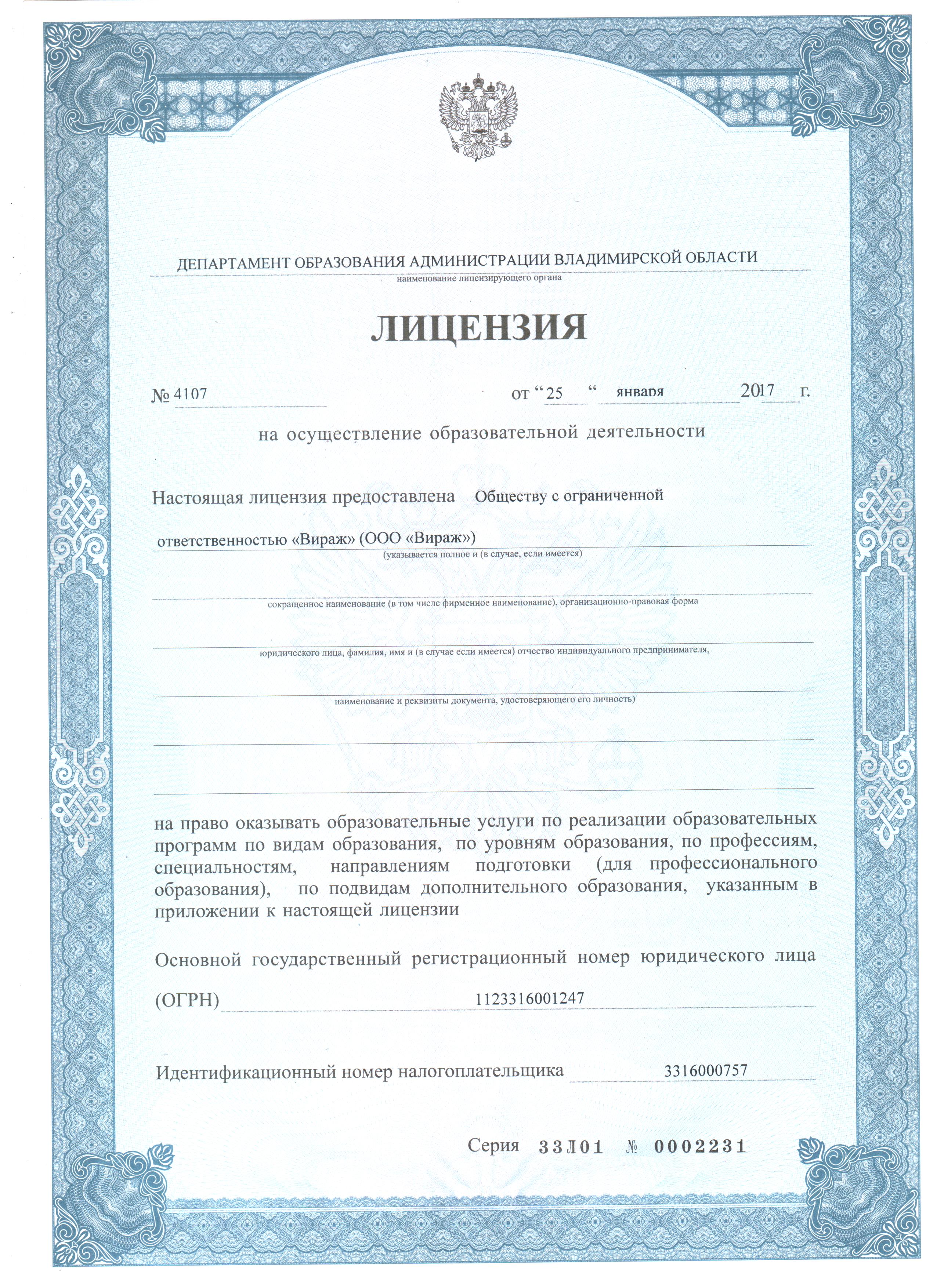 Лицензия с приложениями на осуществление образовательной деятельности: